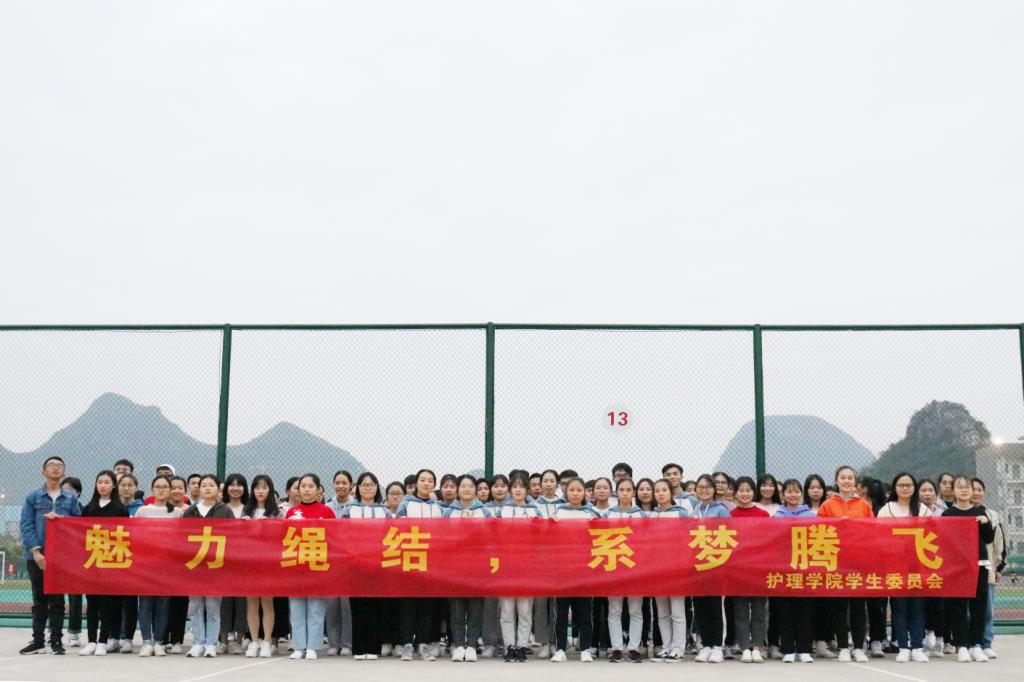 为激发同学们锻炼的兴趣,培养学生的凝聚力和向心力。11月18日至11月21日,护理学院在临桂校区篮球场举办以“魅力绳结,系梦腾飞”为主题的“新生杯”跳长绳比赛。