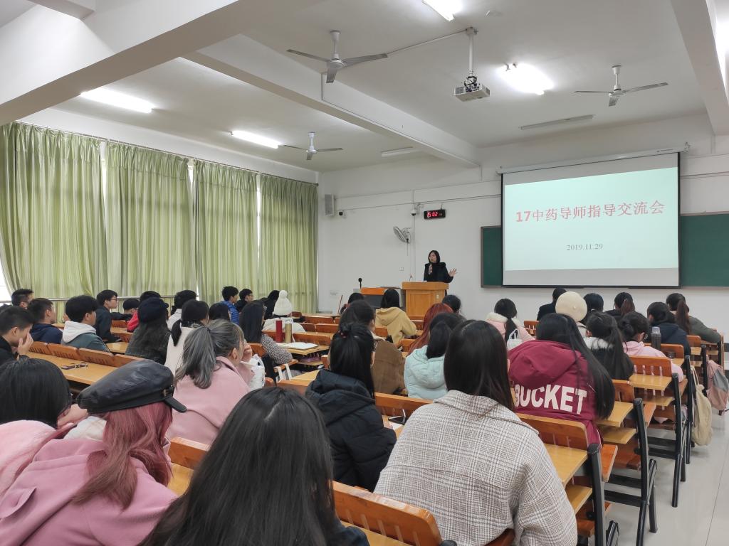 11月29日下午,校党委陈旭副院长与17中药本科班全体同学交流会在临桂校区N207开展。