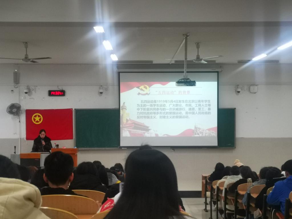 活动伊始,全场一起起立奏唱歌曲《我和我的祖国》。接着,黄艳芸分别就解读爱国诗篇,爱国人士、民族英雄的介绍,“五四运动”影视资料的观看,以及讲解五四运动的发展历程四个方面与同学们一起学习有关爱国的题材资料,让同学们对爱国主义产生了更深刻的认识。同时,黄艳芸老师强调,中华民族的核心就是爱国主义,希望同学们始终牢记民族精神,树立正确的爱国主义观念,牢记历史,将自己的爱国主义精神运用到实际学习生活中。会后同学们纷纷表示,通过今天的学习,在五四精神激励下,处在这个新时代的我们,应坚定理想信念,继往开来,脚踏实地,勇做时代的弄潮儿。
