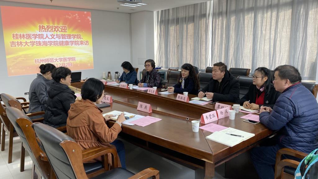 健康服务与管理专业和劳动与社会保障专业是我校近两年新增设的本科专业,目前尚处于建设的初级阶段。为更好地发展与完善上述两个专业、解决专业建设过程中存在的困难和问题。同时,进一步加强校际间的合作与交流,2019年12月1日-6日,在学校教务处的大力支持下,桂林医学院人文与管理学院郭振友、潘元青副院长带领健康服务与管理专业负责人杨风博士、劳动与社会保障专业负责人覃双凌教授及覃英华老师一行5人,先后赴杭州师范大学、江苏大学、安徽医科大学、华北理工大学等4所高校进行专业建设考察和学习交流。