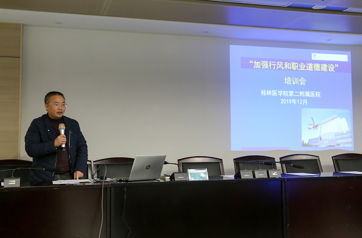 12月9日,桂林医学院第二附属医院召开加强行风和职业道德建设会议,党委书记宋剑非,党委副书记、院长葛波等全体院领导和中层干部共130多人参加了会议。党委副书记、纪委书记王群主持会议并讲话。
