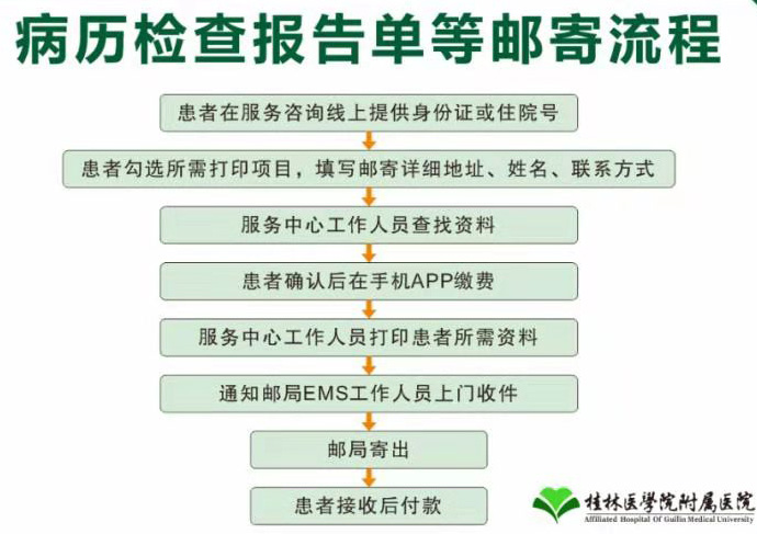 家住全州县蕉江瑶族乡的倪女士,其儿子在附属医院小儿外科住院治疗后,日前正准备拿着病历资料办理保险报销手续时,工作人员指出,还差一份医院盖章的入院记录复印件。从家里到桂林跑一趟需要一天时间,医院能否打印入院记录并代邮?