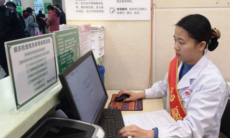 然后来到一楼门诊服务中心医保咨询处领取慢性病申请表,在预约时间里,刘医生根据她的病史填写好申请表,门诊服务中心将所需提供的化验报告单、超声检查报告单打印好,经审核后被告知可以到当地医保所办理了。