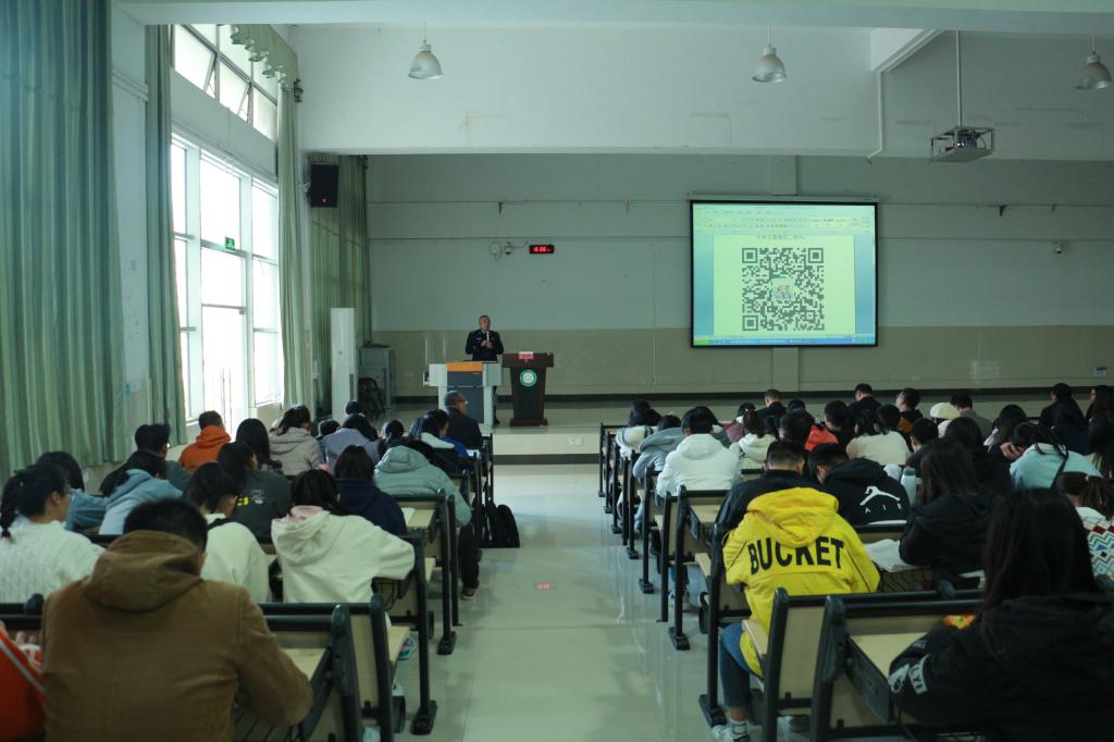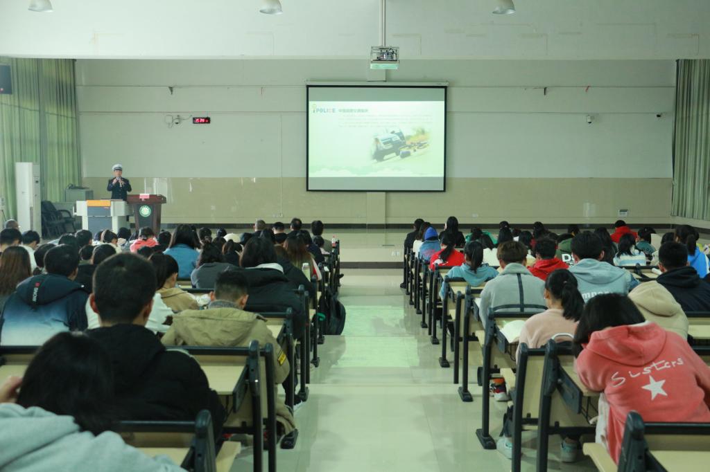 蒋川辉从人、车、路三个方面介绍当下我国交通基本情况,期间结合图片、视频对桂林市交通事故进行分析,提醒学生注意交通安全,文明交通、安全出行。裘晖通过分享几例发生在桂林市交通惨痛案,使同学们意识到了“知危险,避危险”、文明交通的重要性。