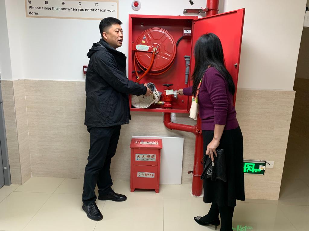 2019年12月10日和12日,国际教育学院主要负责人带领各科室有关人员先后来到临桂校区国际教育学院留学生宿舍办公区域以及东城留学生宿舍,对可能存在的安全隐患进行了全面排查,确保检查工作不留盲区、不留死角。魏兵副院长认真查看了留学生宿舍内的日常用电状况,并重点督查了宿舍楼多处室内消火栓、安全逃生门、电动车充电桩等消防安全重点区域,详细询问了留学生生活区内安全逃生通道的管理和使用情况。魏兵针对留学生公寓和办公区域内存在的安全隐患问题,要求办公室、学生管理部门及时处理,宿舍管理员勤于巡查,做好记录,及时上报,务必保证学生用电安全,严防火灾、坠落等重大安全事故的发生。