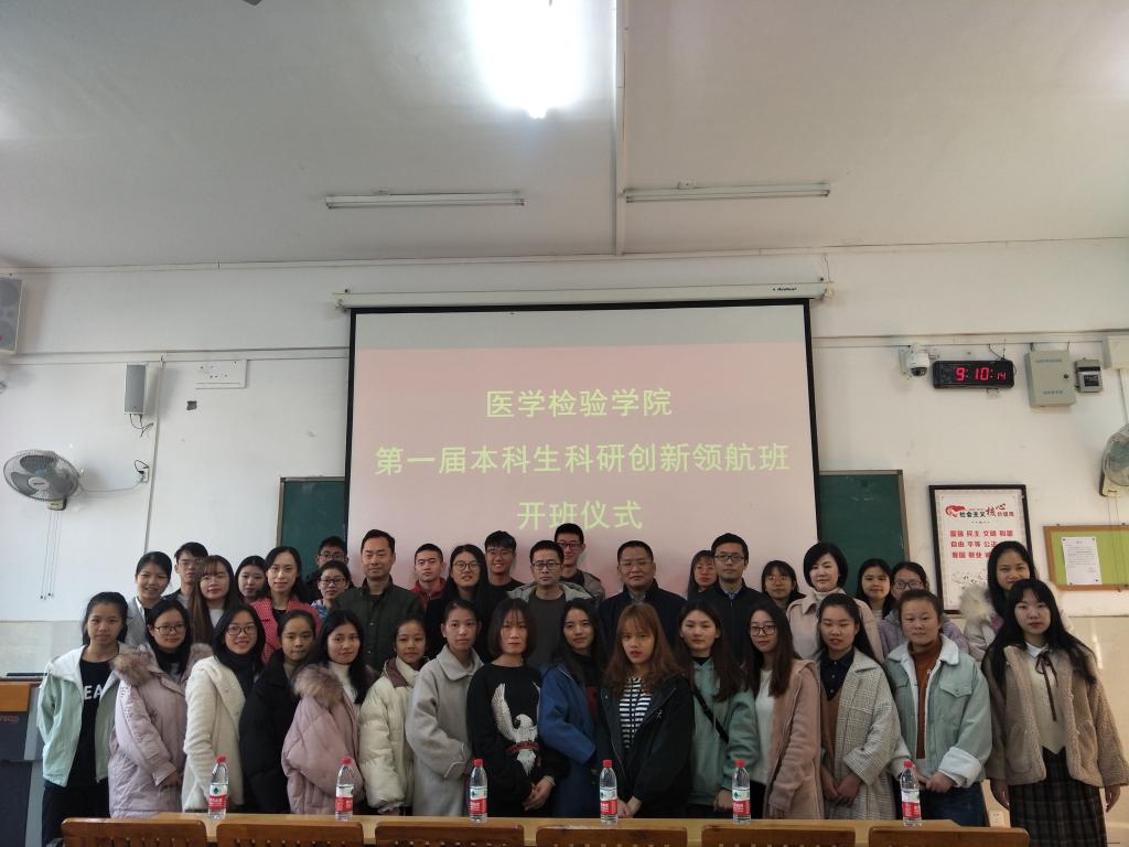 为引领大学生树立创新意识,培养创新能力,提高学生的综合素质,全面推进"三全育人"模式,12月13日上午,医学检验学院在临桂校区教学南楼212举行第一届本科生科研创新领航班开班仪式,医学检验学院党总支书记、院长李云秋,副院长谭洁,党总支副书记黄晨,18、19检本辅导员黄艳芸,各科研小组导师以及30位领航班同学参与此次活动。此次活动,是医学检验学院继“科研创新导师制度”、“学生宿舍梦想导师”后又一重要举措。