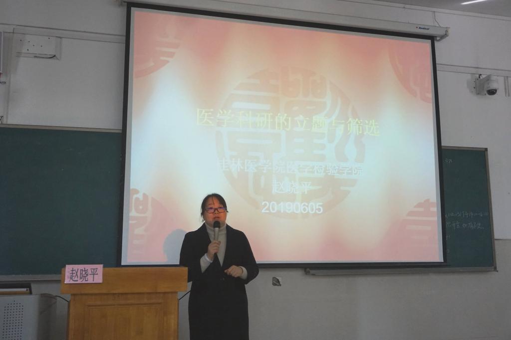 为进一步提高我院学生的科研课题选题能力和开拓科研创新思维,12月13日下午2点,医学检验学院于临桂校区教学南楼S311举办医学科研选题讲座,医学检验学院赵晓平博士主讲此次讲座,医学检验学院团委副书记王秀娟及18、19级部分学生代表参加此次讲座。