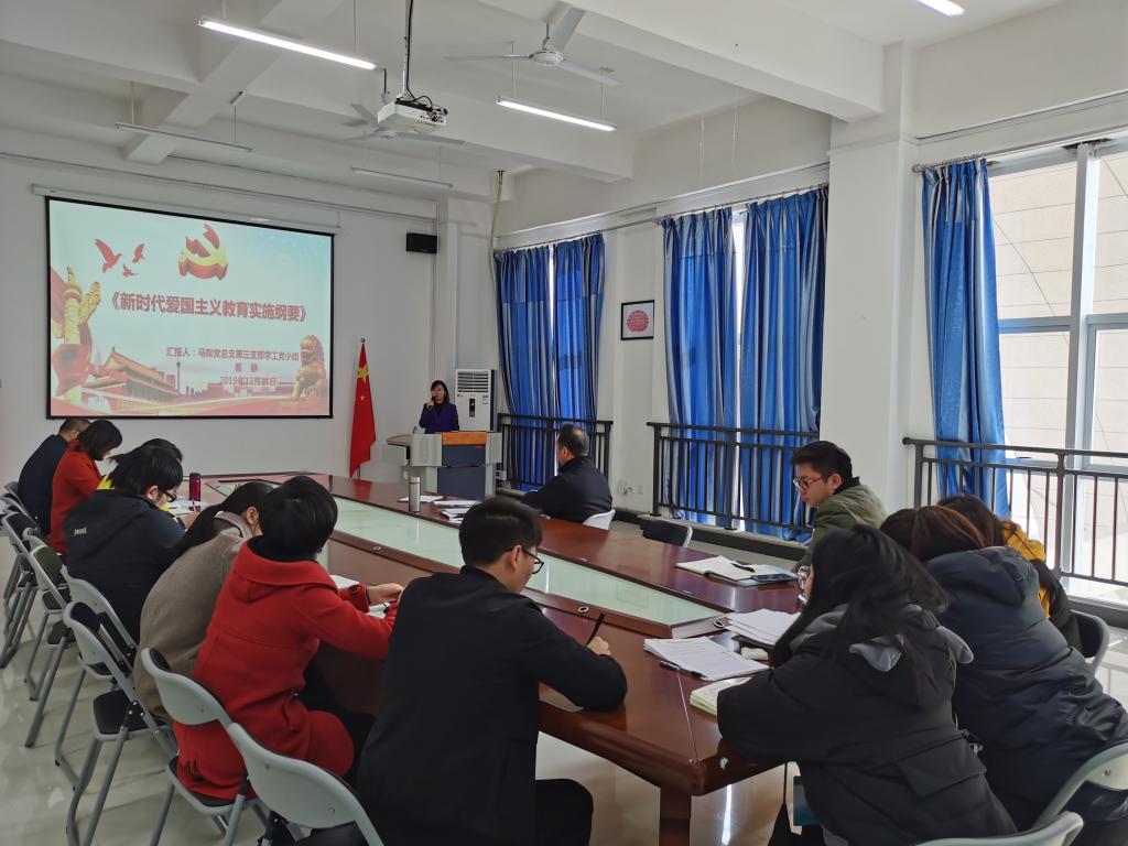 12月11日上午,马克思主义学院党总支第三支部学工处党小组开展《新时代爱国主义教育实施纲要》专题学习研讨会。全体党员同志参加,部分非党员同志列席参加。