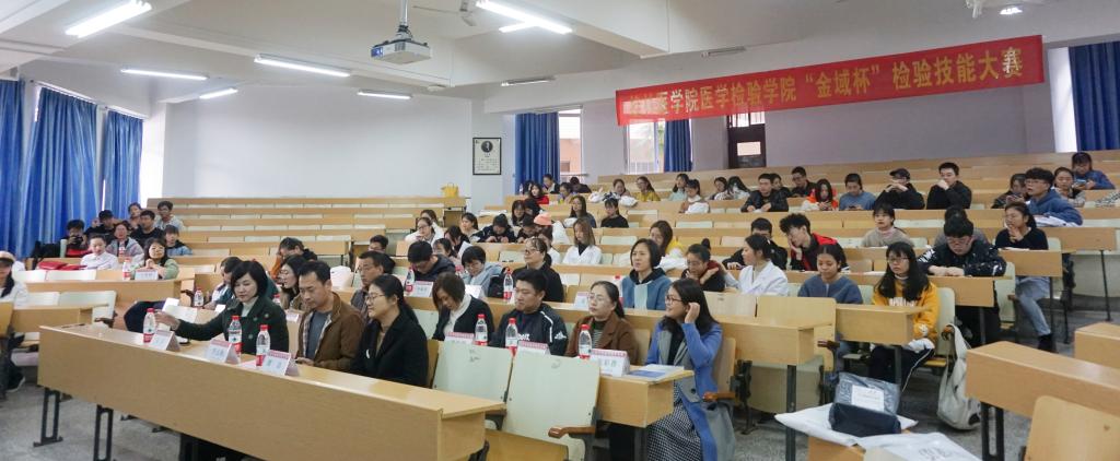 医学检验学院“金域杯”检验技能大赛决赛经过初赛、前期抽签组队、专项培训与操练,于12月15日下午在东城校区科教楼医学检验学院实验室举行。医学检验学院党总支书记、院长李云秋,副院长谭洁,党总支副书记黄晨,团委副书记王秀娟,16、17级辅导员蒋小英,各比赛项目评委及学院相关老师出席了本次大赛。各教研室高度重视,均派出经验丰富的老师担任决赛评委。