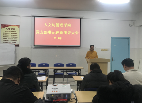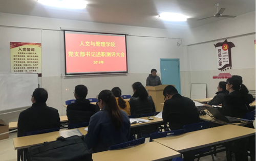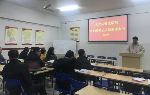 12月19日下午,人文与管理学院党委在人文楼党员之家召开2019年度党支部书记述职报告会。