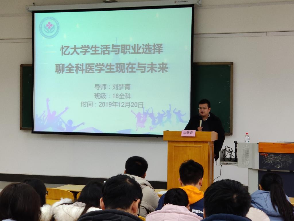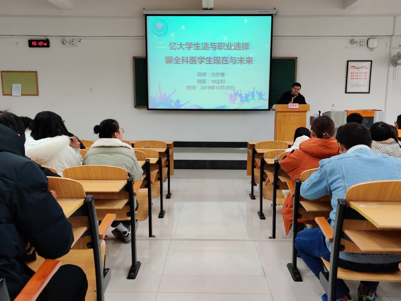 交流会上,刘梦青以“忆大学生活与职业选择,聊全科医学生现在与未来”为题,向学生们分享了自己大学生活,讲述了自己的高考选择、大学时期的创业过程、毕业后的职业选择,引出了关于全科医学生二次择业问题。他告诉同学们,作为一名大学生,要明白什么时候该做些什么,做好明确的学习规划,有清晰的思维,注意劳逸结合,提高学习效率。刘梦青讲述了自己的切身经历,分享了许多经验,给同学们未来的职业选择做了指导,让同学们意识到做好明确规划和养成良好习惯的重要性。