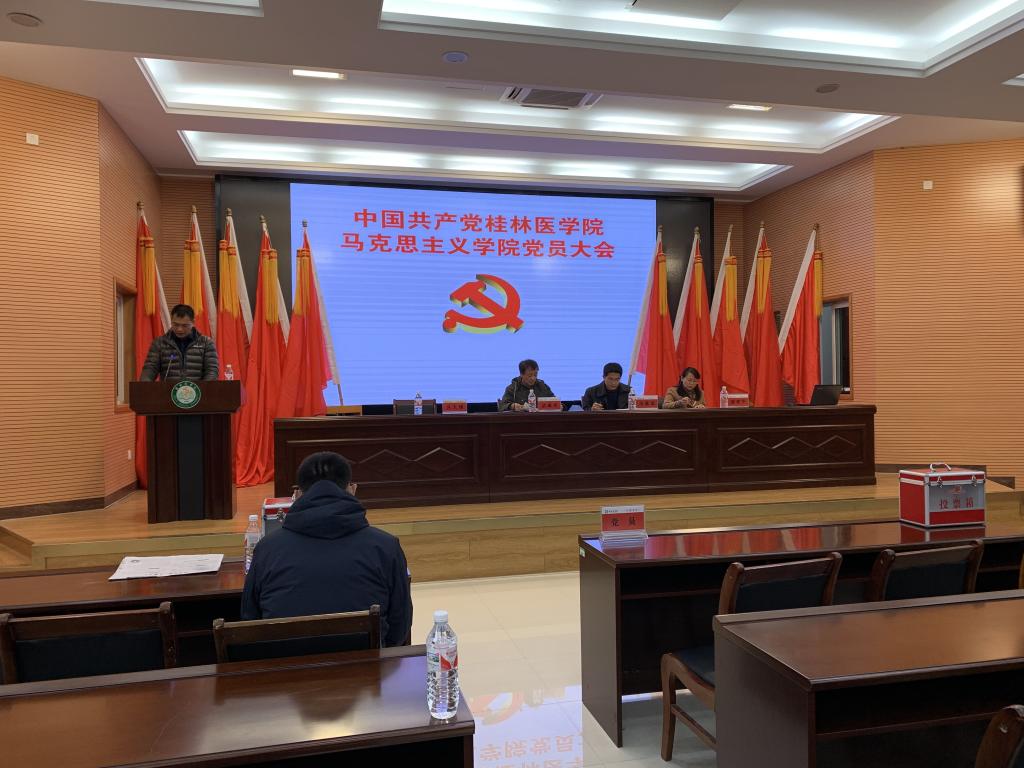 12月26日下午,马克思主义学院党总支在临桂校区明德楼101室,举行党员大会选举产生第一届党总支委员会委员,会议由马克思主义学院党总支副书记张建平主持,全体党员参加。