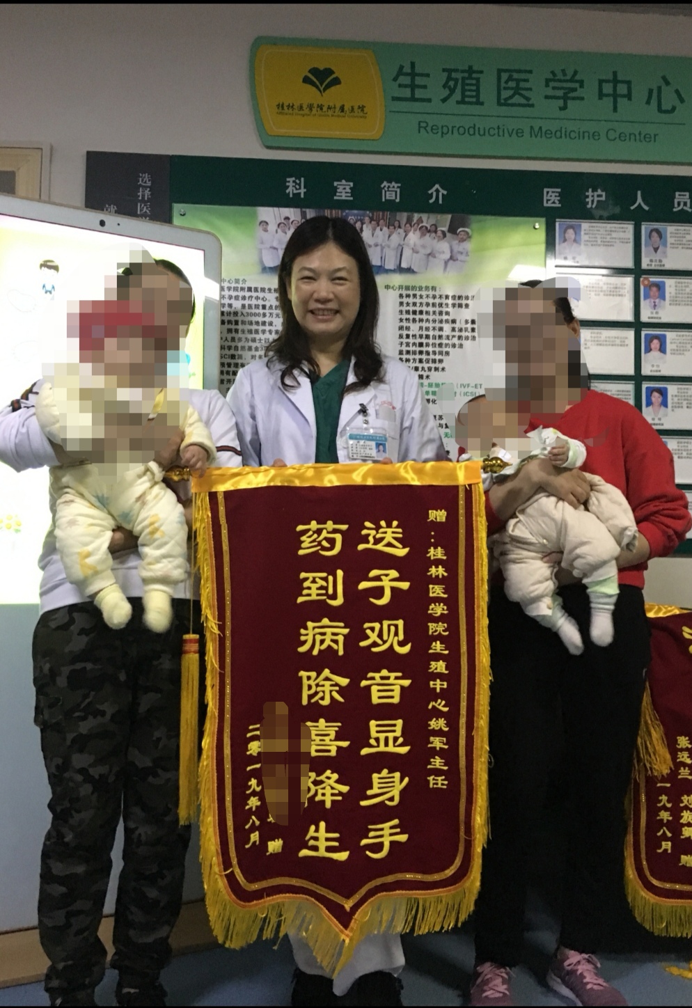 刘敏和病友一起向生殖医学中心送来锦旗