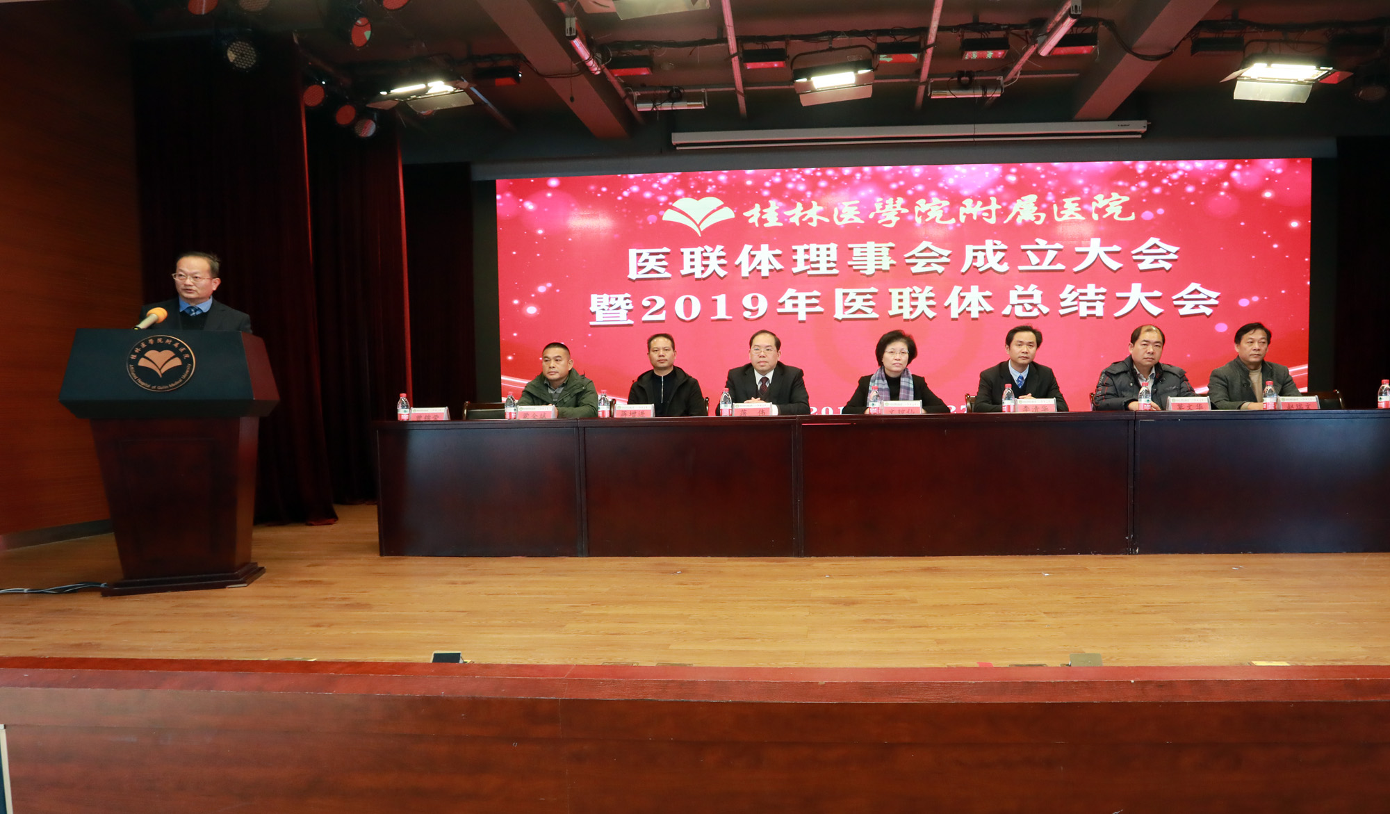 12月27日下午,附属医院在综合楼六楼多功能厅召开医联体理事会成立大会暨2019年医联体总结大会。医院党委书记文琼仙,院长李清华,秀峰区、灌阳、全州、恭城等县(区)的卫生健康局领导莫文华、蒋增进、赵瑞文、蒙全斌,以及我院在院领导、六家医联体成员单位相关负责人、医院相关科室中层正职干部出席会议。副院长曾锦荣主持大会。