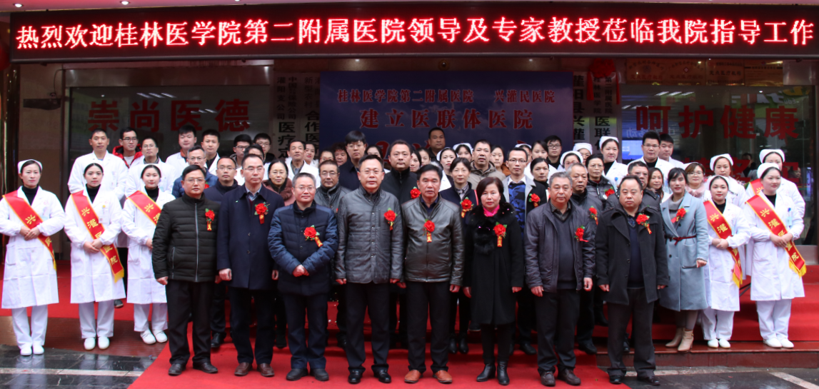 12月26日上午,第二附属医院与灌阳兴灌民医院举行医联体揭牌仪式。第二附属医院组织20多位教授、专家和医护人员来到灌阳兴灌民医院,举办桂林医学院第二附属医院民营医院医联体成员单位揭牌并开展义诊、教学查房等活动。