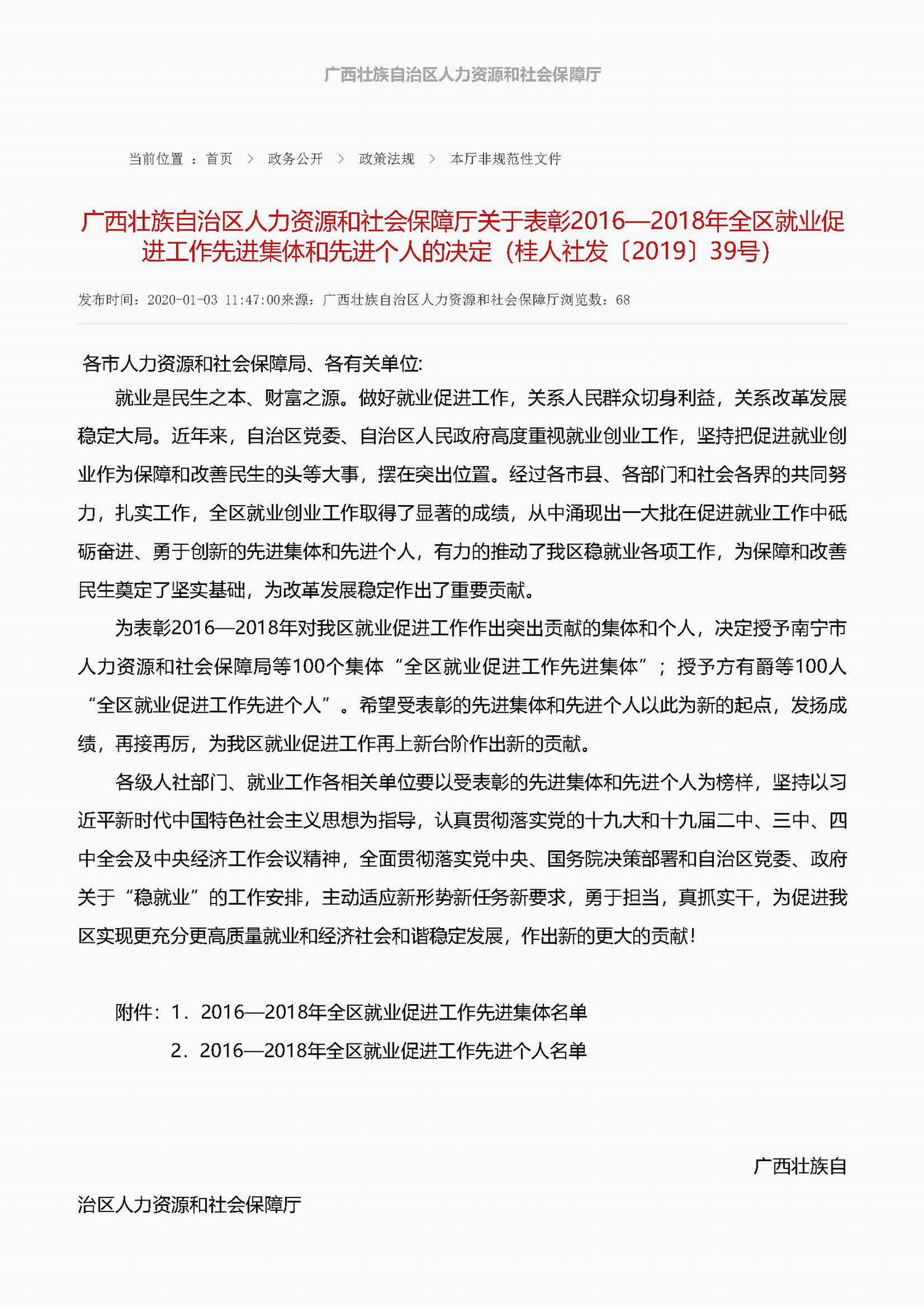根据《广西壮族人力资源和社会保障厅关于开展全区就业促进工作先进集体和先进个人表彰活动的通知》(桂人社函【2019】184号)文件精神,经过各地各部门推荐、材料审核、集体研究等程序,我校招生就业处脱颖而出,荣获全区就业促进工作先进集体,在这次评比中,全区只有五所普通高校获得以上殊荣,我校也是唯一一所医学院校获得此项荣誉。