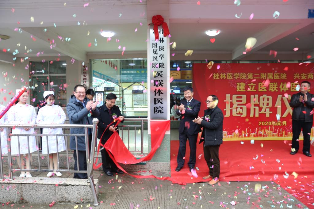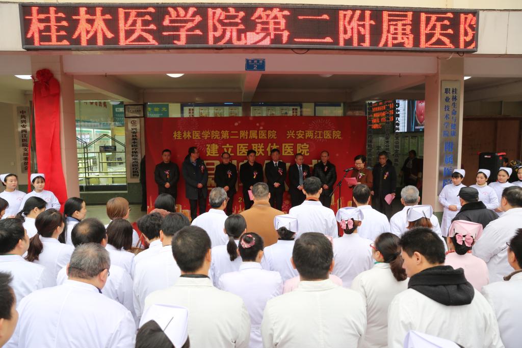 1月3日上午,桂林医学院第二附属医院与兴安两江医院举行医联体揭牌仪式,旨在促进医联体建设与预防、保健相衔接,方便群众就近就医,防止因病致贫返贫,促进健康产业发展和经济转型升级,增强群众获得感。
