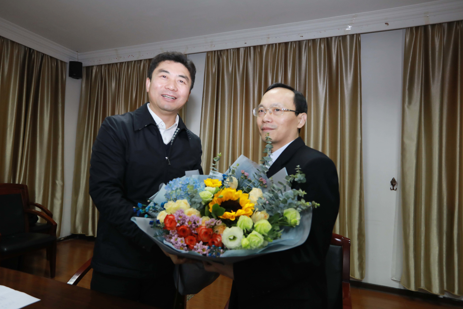 在我院行政二楼会议室,白松涛向金俊飞送上一束鲜花,感谢他为桂林市医疗卫生事业做出的突出贡献。座谈中,白松涛详细询问了金俊飞目前的工作、生活情况,鼓励他潜心钻研,勇攀科研高峰,带领团队在医学领域取得更大的突破和成果。