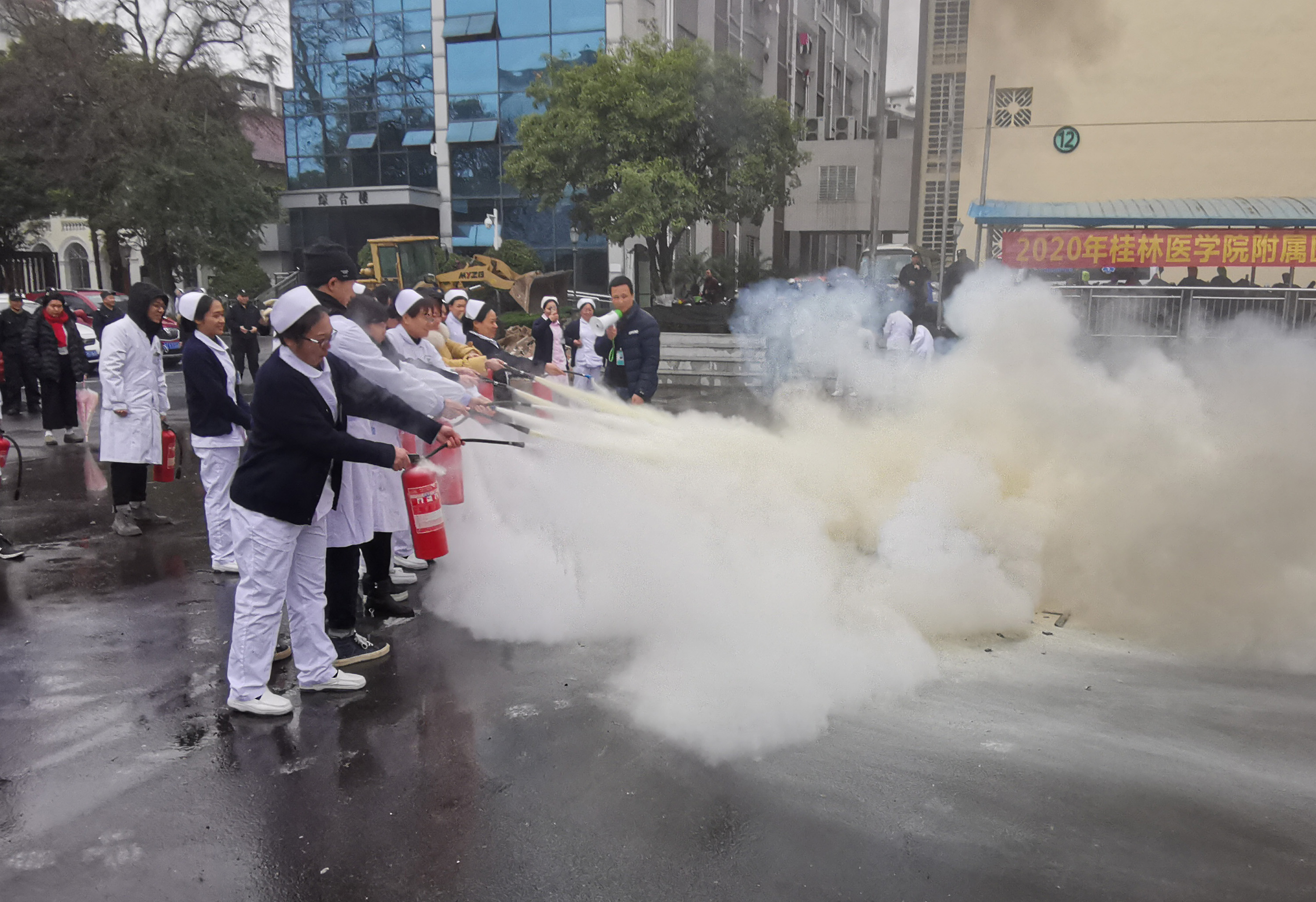 医务人员进行灭火训练