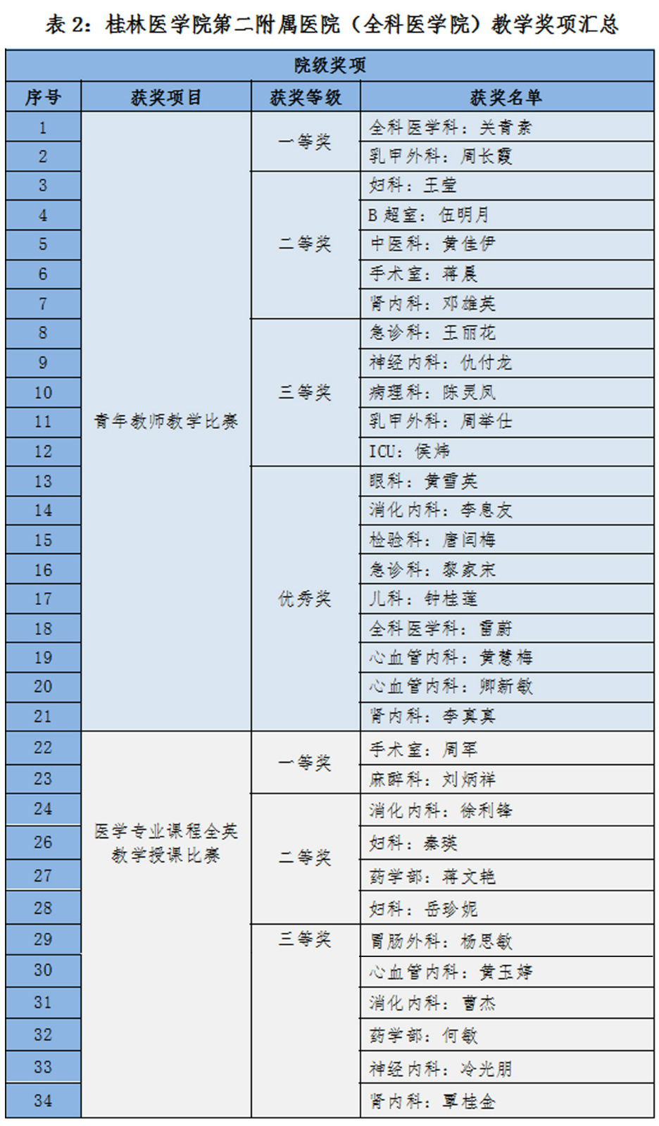 (二)青年教师积极参加我院举办的各类教学比赛,通过比赛活动促进青年教师教学能力和水平的提升,获奖情况具体见表2。