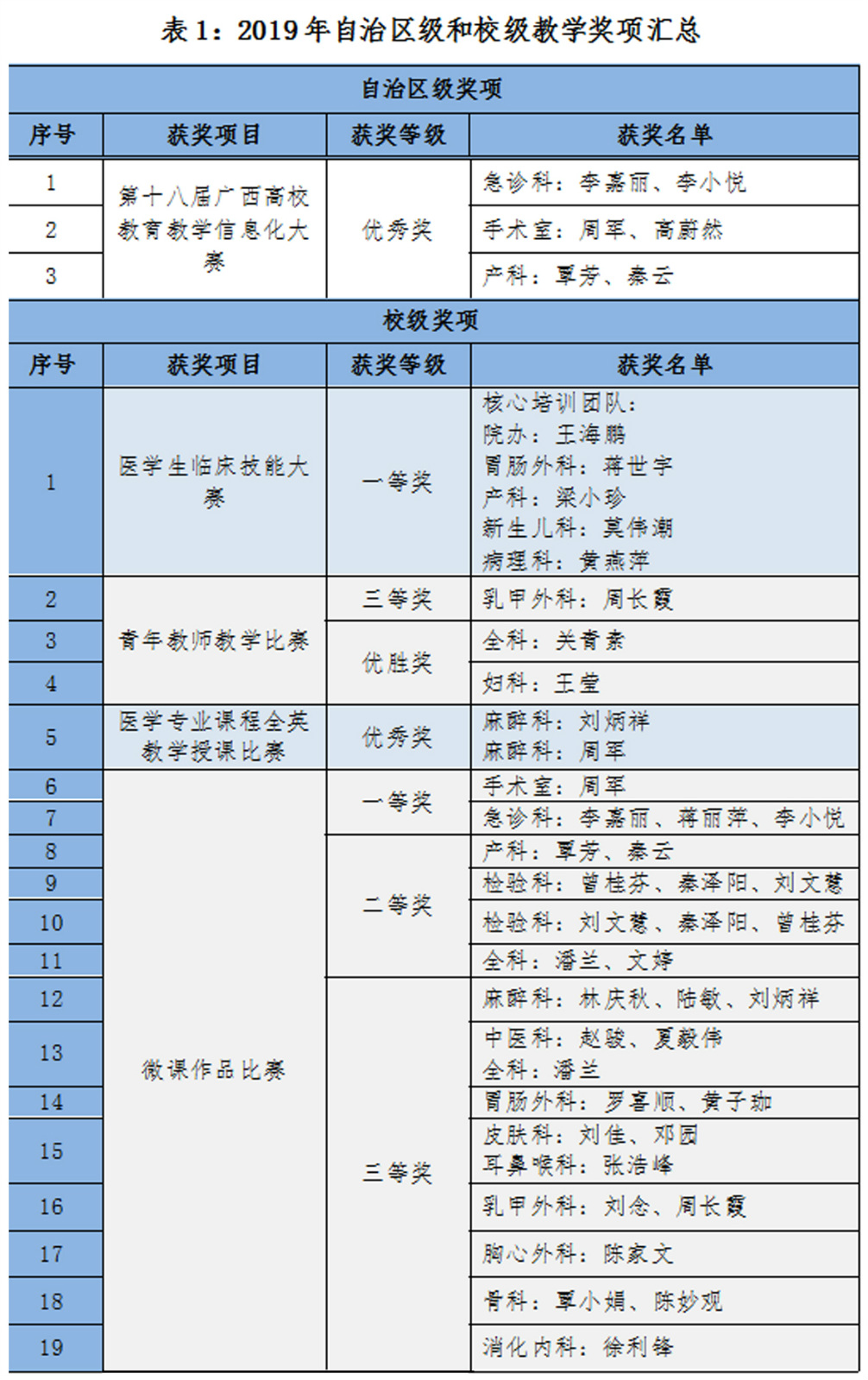 (一) 2019年我院教职工积极参加各类教学比赛,获得自治区级奖项3项,校级奖项19项。
