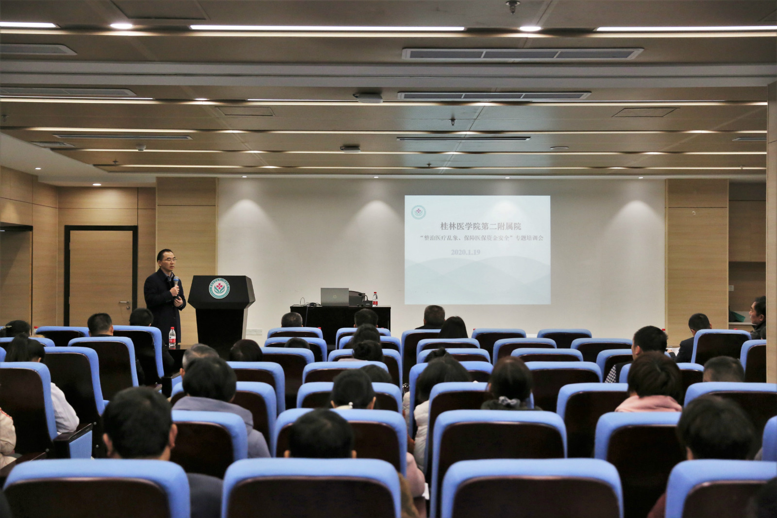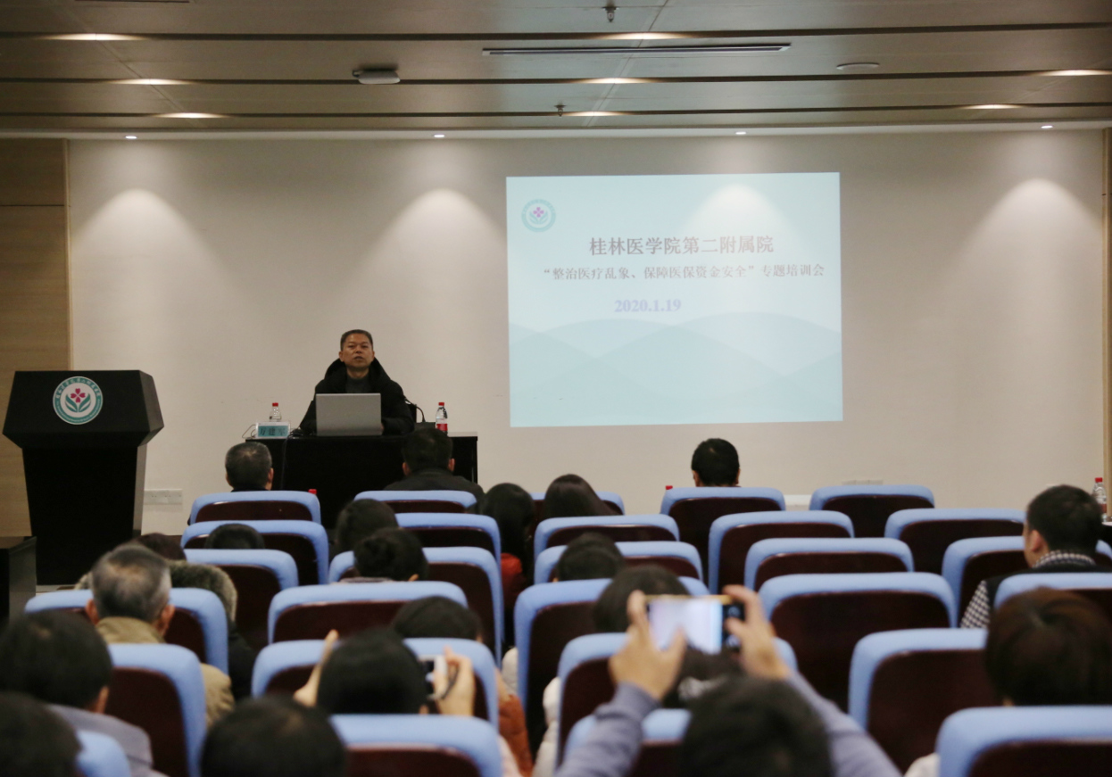为强化医务人员对医保政策的理解和落实,预防欺诈骗保行为,整治医疗乱象,保障医保基金安全,1月19日,第二附属医院邀请市医保局党组成员万建军做专题培训课。医院院长葛波,党委副书记、纪委书记王群,党委副书记刘梦青,副院长蒋晓山、袁晟光、夏中华和全体中层干部、副高职称及以上职工、各科室医保信息员参加培训会,会议由副院长夏中华主持。