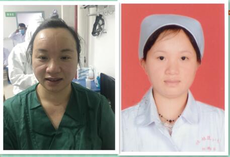 摘下口罩、护目镜的覃馨梅(左)是这样的