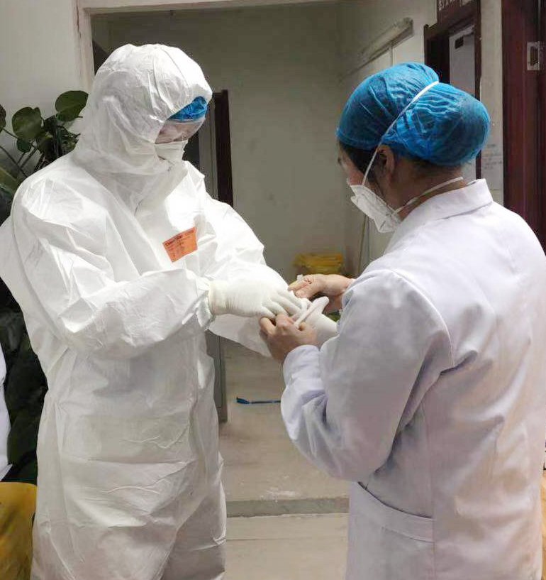 我现在是分在感控组,主要是对医疗队员及地方医院医务人员的防感控措施进行监督和培训,可以说,打赢这场疫情攻坚战,首要前提是千方百计地做好医务人员的防感控措施,让医务人员打胜仗零感染。