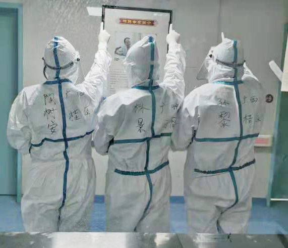 同时,医院领导及各部门以及全桂林市的老百姓对我们的全力支持及关爱,让我们在前线无后顾之忧,非常感动。特别是武汉医护人员的艰辛、坚强、勇敢,让我们感动,我向他们致敬。武汉当地对我们的生活照顾的无微不至,非常感激!