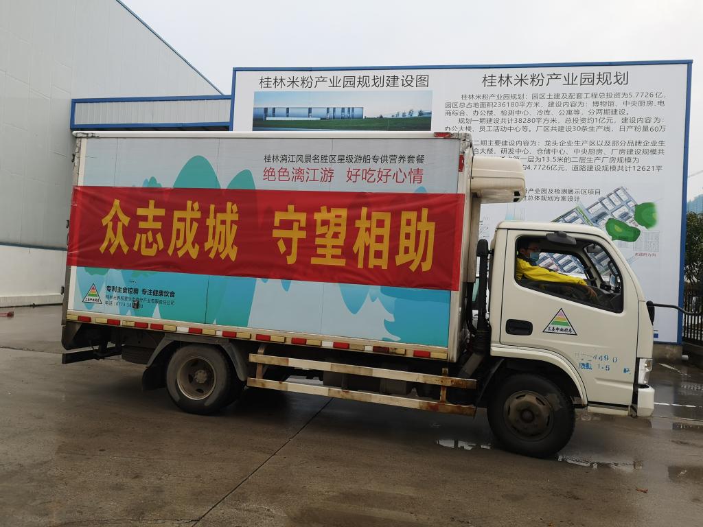 进行简短的捐赠交接仪式后,米粉被装箱运往武汉,为打赢新冠肺炎防疫这场没有硝烟的战争提供物资保障。医院负责人表示,除了做好桂林本地的疫情防控工作以外,医院无时无刻不惦记着包括第二附属医院10名队员在内的广西援鄂抗疫医疗队员,这次为医疗队输送桂林米粉,正是想对身在武汉抗疫前线的广西医生们说一声:“加油!你们在前线冲锋,我们在后方支援保障,家乡人民等你们凯旋。”
