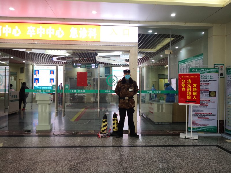 对门诊楼实施管控。门诊楼是疫情防控的第一道防线,为守好防线,保卫科配合医务人员在接到疫情防控要求的第一时间对门诊大楼进行管控,配合预检分诊台护士做好体温测量工作。