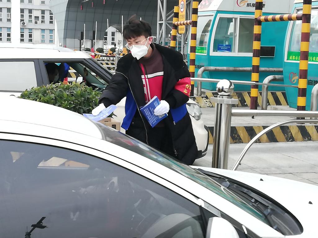 (临床医学院2019级临床医学专业杨宿睿同学在四川省成都市成万高速彭州收费站参加防疫志愿活动)