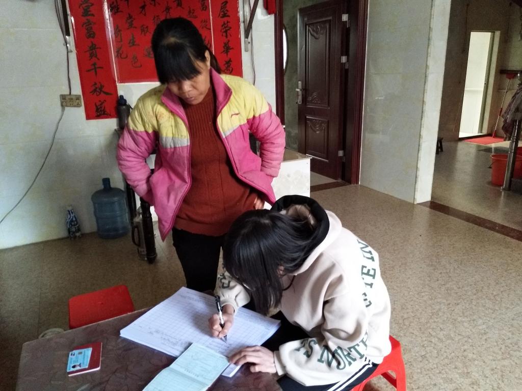 (临床医学院2017级临床医学专业滕洁樱同学在大黄村参加防疫志愿服务对村民疫情进行排查活动)