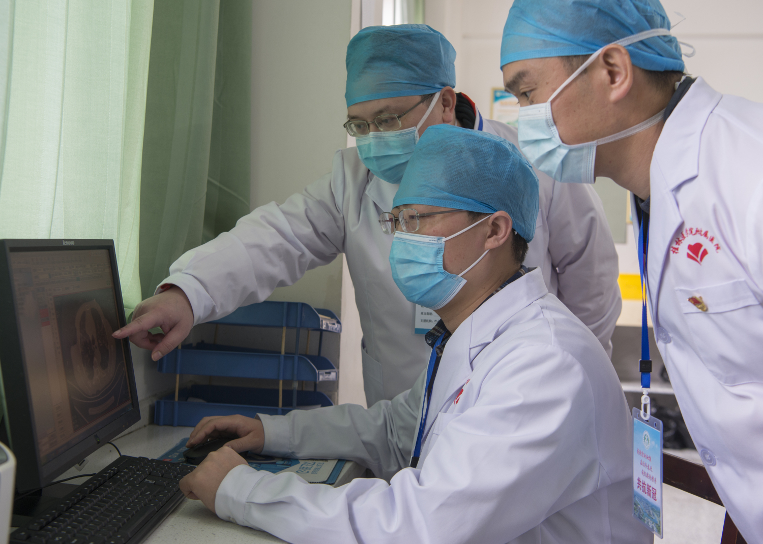 首先是与我组队一起来到竹山的陈峰、杨新官两位副主任医师,一位是呼吸与危重症科的资深专家,另外一位是我们放射科的阅片能手,我们组成了亲密无间的诊疗团队,在竹山县人民医院抗击新型冠状病毒的战场上积极发挥各自专业特长,相得益彰。