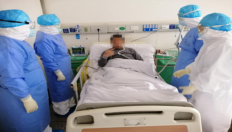 急危重症是我的老本行,这里我不得不提到竹山县人民医院重症医学科主任沈明勇,在我们来到十堰进驻竹山县人民医院前,他已经在重症新冠隔离病区独自坚守了一周,两例重症病人让他承受了巨大的压力,我们桂医附院重症团队的到来让他如释负重。
