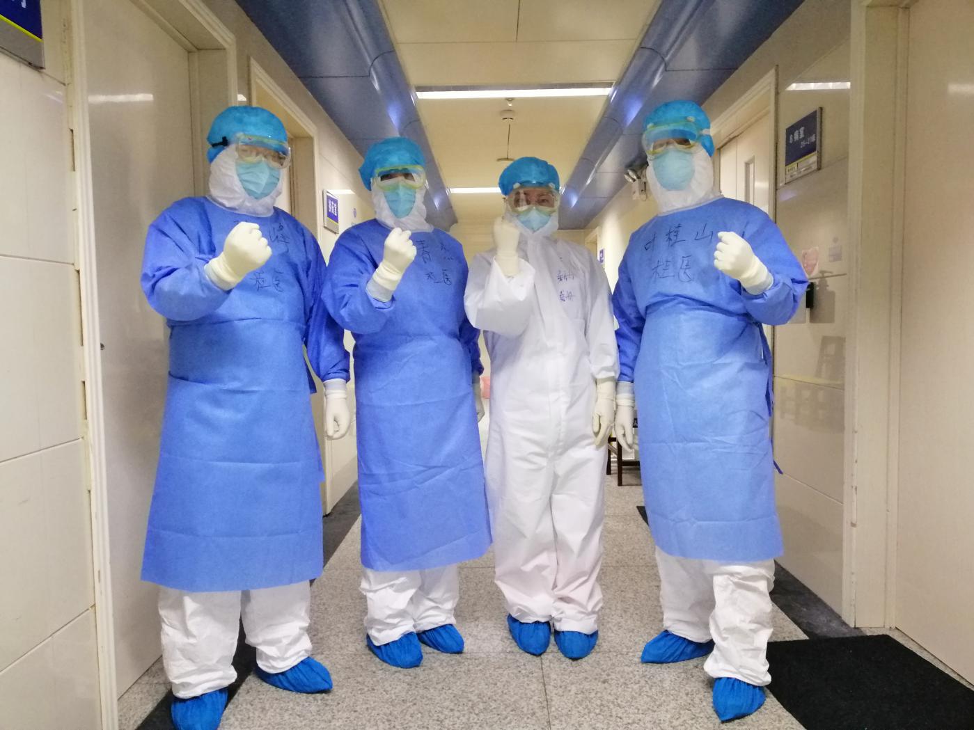 我们身后也有着坚强有力的后盾与保障,医院的领导和同事们临行时的嘱托和鼓舞言犹在耳、微信联系中无微不至的关心、及时送达的物资暖人心田,还有我所在的呼吸与危重症医学科主任马礼兵,他时刻忙碌于桂林市新冠肺炎患者救治的同时,也不忘指导远在湖北的我和其他同事,提供治疗意见、提醒我们做好防护。