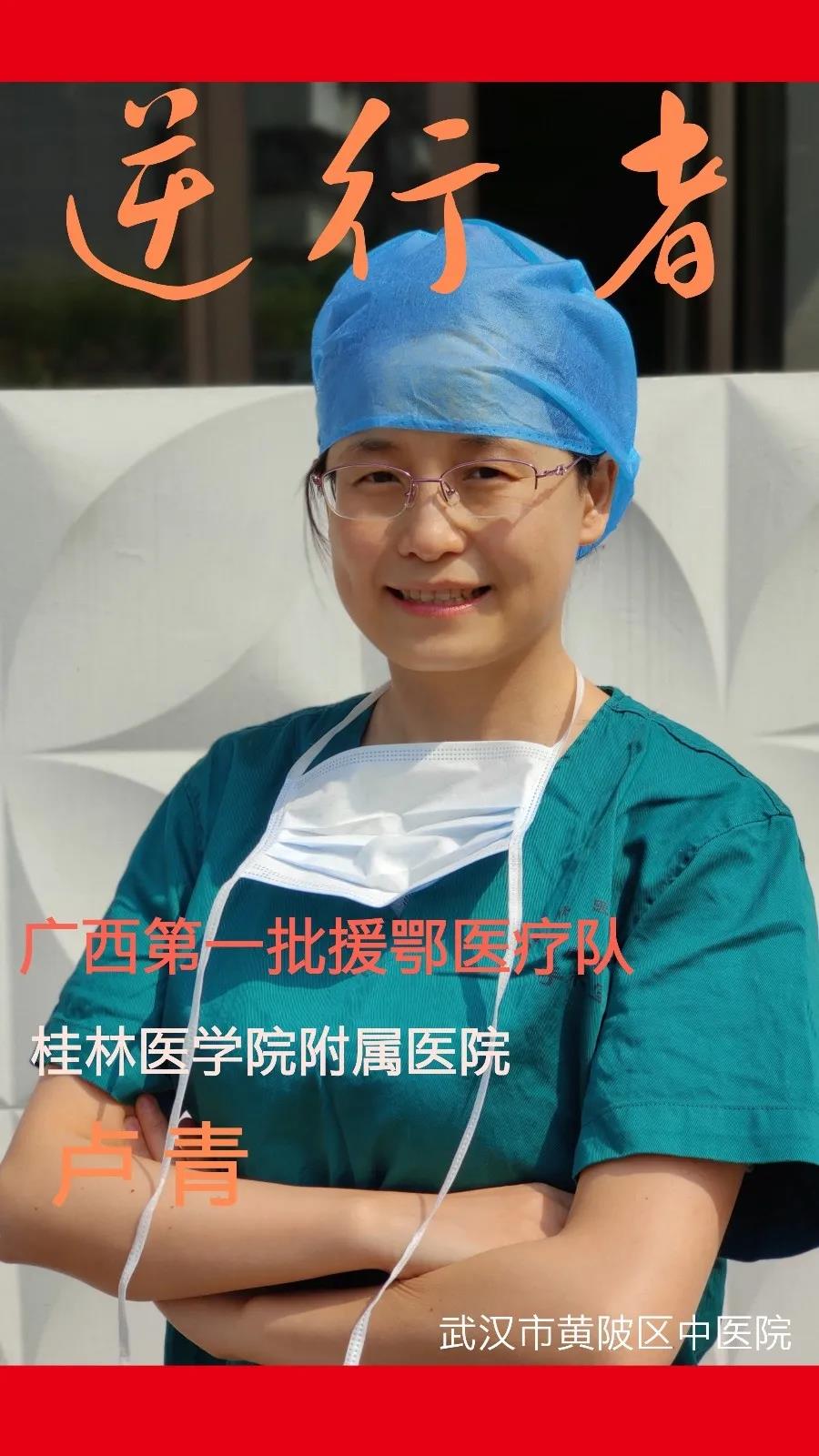 卢青,医院感控管理科副科长,主任医师,广西第一批援鄂医疗队感控组长,桂林医学院附属医院第一批援鄂医疗队队长,临时党支部书记