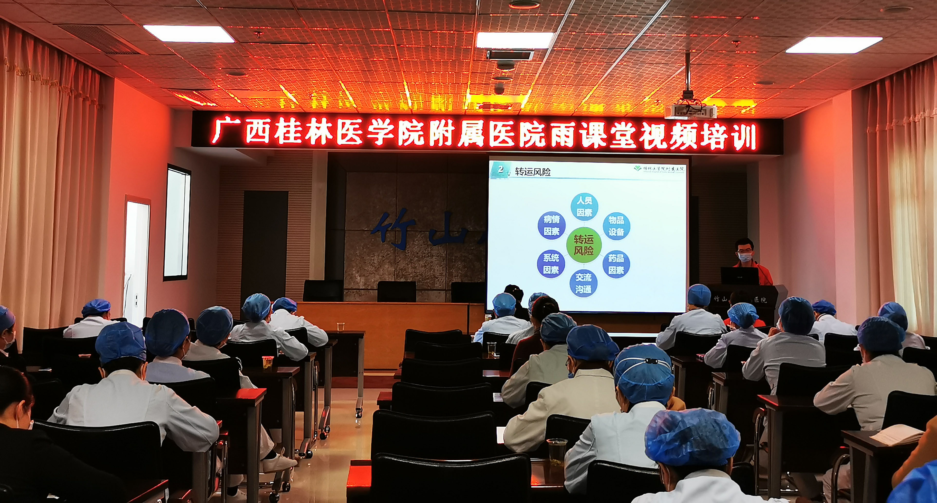 3月18日下午,桂医附院第二批医疗队6名护理队员充分发挥医学院附属医院教学优势和经验,运用“雨课堂”在竹山县人民医院开展了一场别开生面的线上线下危重症护理培训,当地医院200余名护士参加了培训。