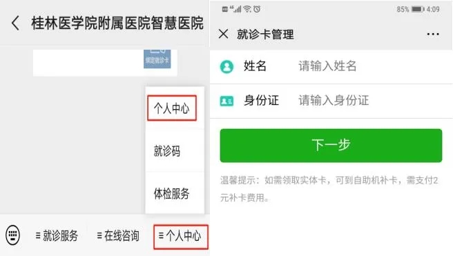 二、点击“个人中心”,绑定就诊卡