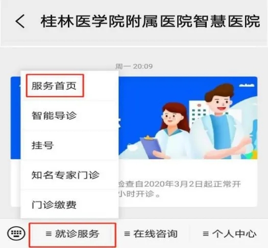 一、关注桂林医学院附属医院微信公众号