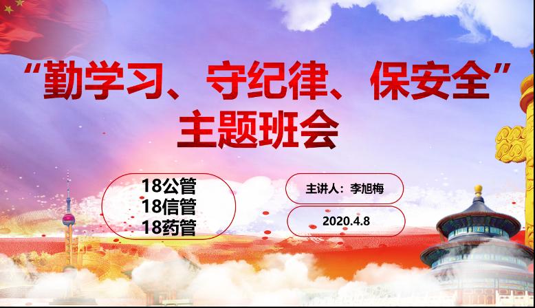 为进一步加强疫情防控工作,维护校园安全稳定,保障学生上课期间的安全,提高学生安全意识和防范安全隐患的能力,人文与管理学院于2020年4月3日- 4月9日组织各班级开展了线上安全主题教育班会活动。