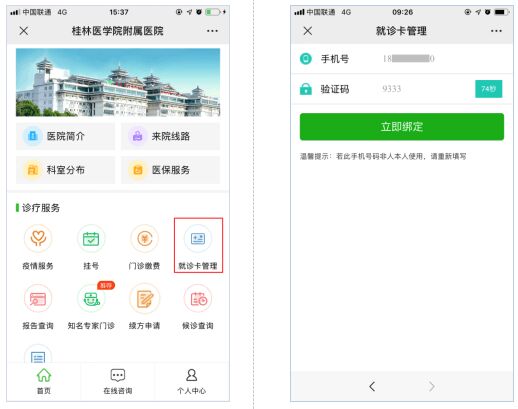 第一步:关注桂林医学院附属医院公众号,并绑定患者就诊卡