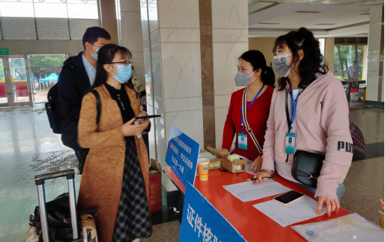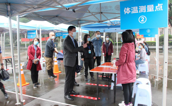 4月19日,校领导班子以及疫情防控工作领导小组成员到东城、临桂校区指导研究生返校工作,并就进一步落实疫情防控措施提出具体要求,协调由于雨水恶劣天气造成的一系列突发状况。天气虽冷,但情暖学子,在学生入校审核通道里,副院长陈旭亲自帮助学生提拎行李,帮助学生快速入校。校领导的关怀与细心都体现了学校对学生返校工作的重视与抓实抓细。研究生学院和研究生工作部全体成员、研究生专兼职辅导员24小时值守东城和临桂两校区,来自各部门的30多名教工志愿者积极配合,不辞辛劳,携手为返校学生做好细致服务工作。