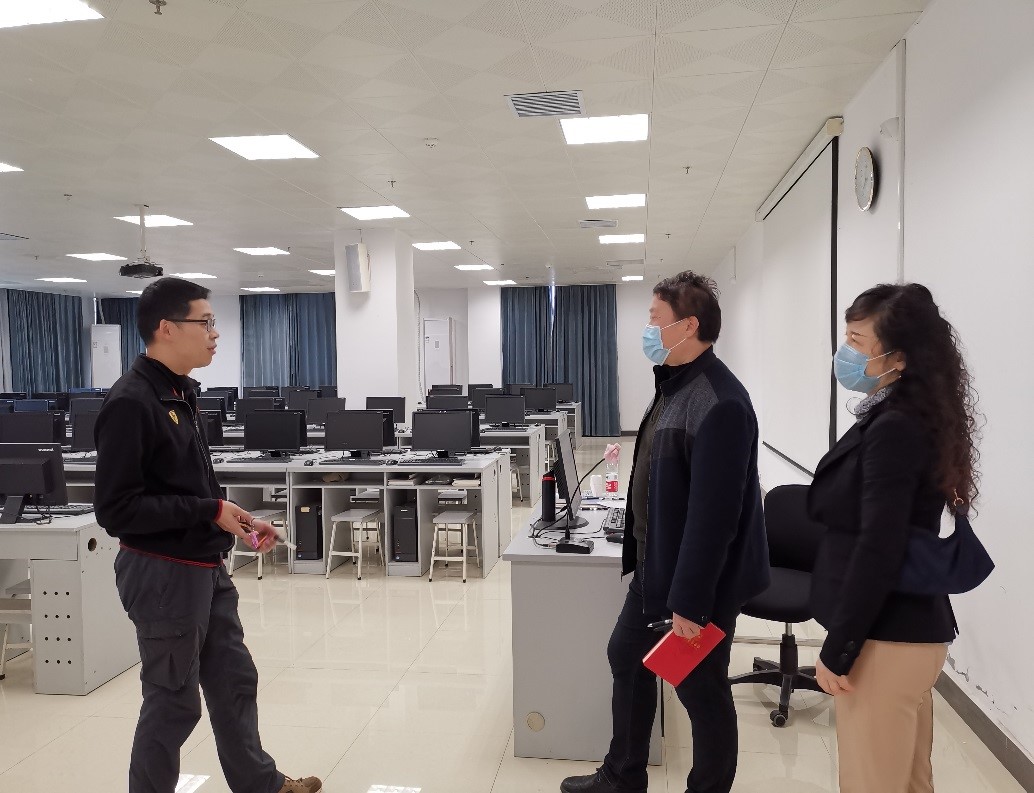 为全面贯彻落实学校关于做好疫情防控期间春季开学各项工作安排的通知精神,确保疫情防控期间我院实验教学中心各项安全防控和教学工作的正常。2020年4月23日,人文与管理学院郭振友副院长、潘元青副院长、实验教学中心副主任黄赛恩等对我院实验教学中心的安全防控措施与开学前教学准备工作进行了检查。