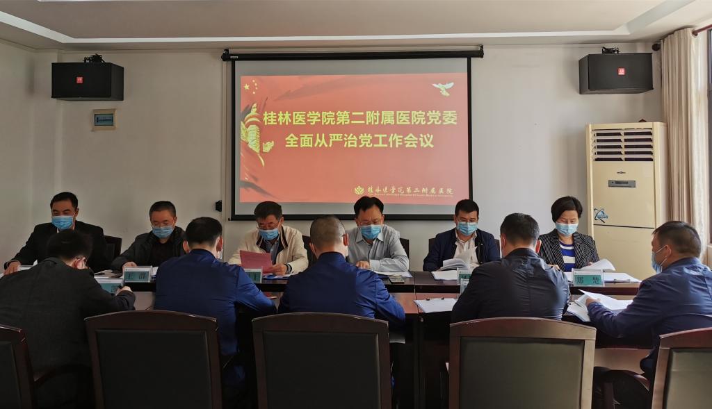 4月27日,桂林医学院第二附属医院党委在8号楼6楼会议室召开党委会,专题研究医院全面从严治党工作,会议由党委书记宋剑非主持,党政领导班子成员及党委委员参加会议。