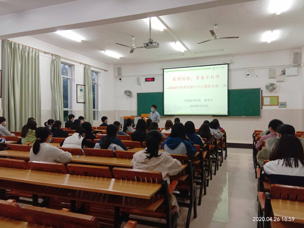 为加强学生思想引领,缓解学生心理焦虑,落实学校有关疫情防控期间做好学生心理健康服务的工作要求,开课一周以来,生物技术学院认真组织开展“开学第一课”——疫情心理疏导主题班会。