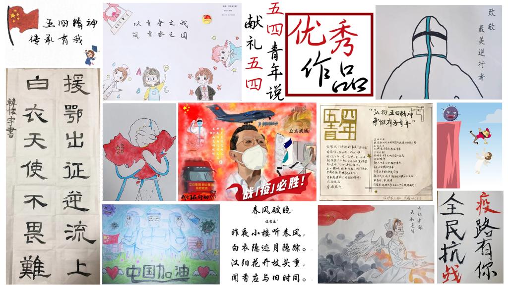 为展现新时代青年的五四精神和爱国情怀,护理学院开展“五四”线上“云”作品征集活动,共收集作品275幅,护院学子通过绘画、书信、视频、原创诗歌等形式展现护院青年的五四情怀,表达对抗疫英雄崇高的敬意和真挚的祝福。