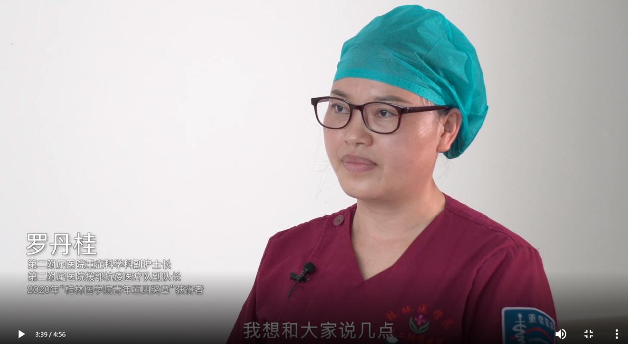 为激励广大青年,弘扬青春正能量,学习新时代好榜样,援鄂医疗队青年代表重症医学科副护士长、医疗队副队长罗丹桂、呼吸与危重症科医生银建华、呼吸与危重症医学科护士何金宝采用录视频的方式寄语学子。