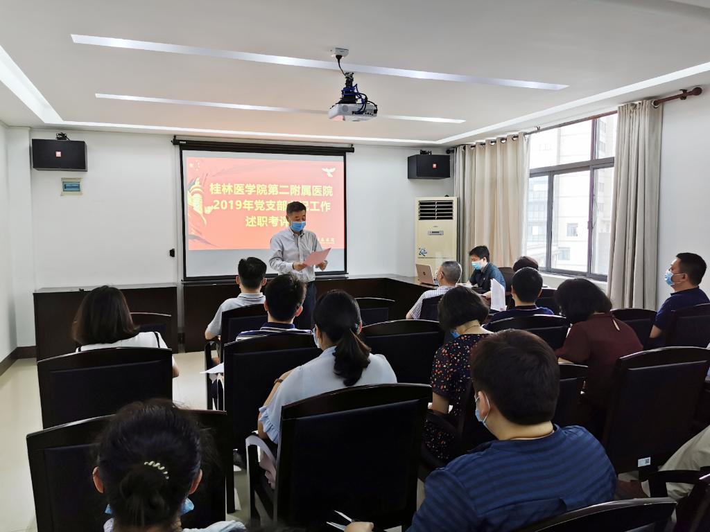 5月7日下午,第二附属医院党委在8号楼6楼会议室召开2019年党支部书记工作述职考评会。医院党政领导班子成员、党委委员、党支部书记、党员和群众代表50余人参加会议。会议由党委书记宋剑非主持。