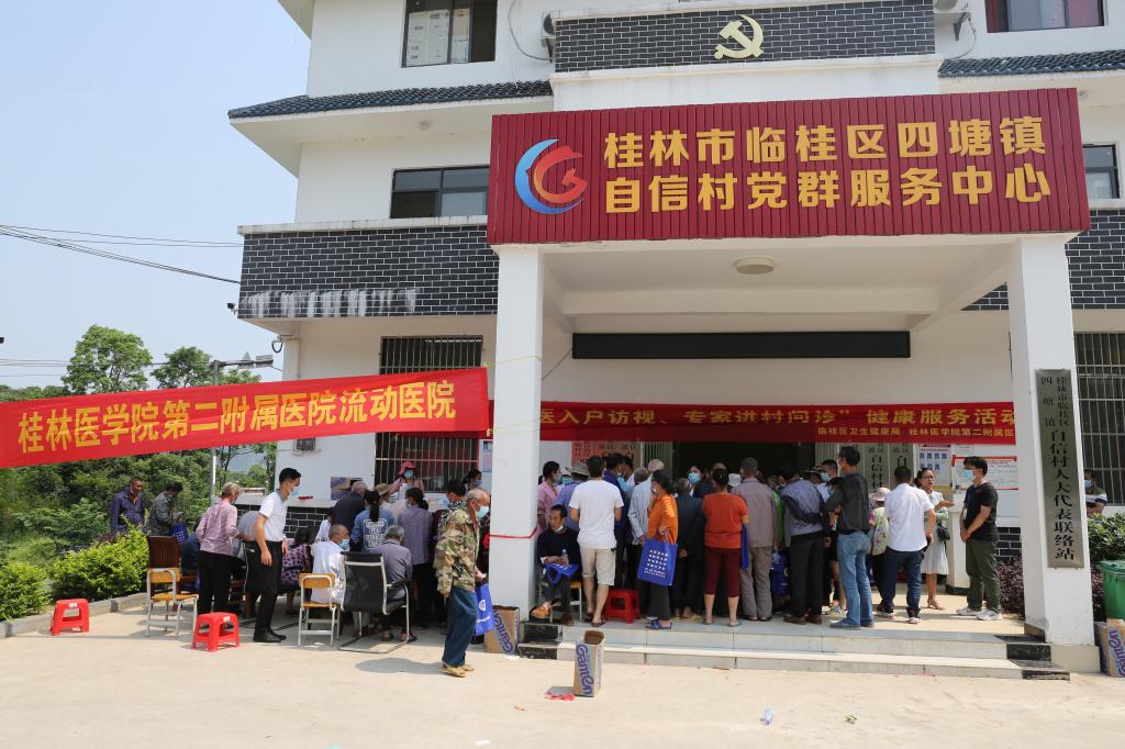农村安,社会稳。第二附属医院在做好常态下疫情防控的同时,努力做好医疗服务保障工作,用力用劲、用心用情保障好民生。连续两个多月,桂医二附院组织医疗队深入临桂区的五个乡镇多个贫困村,进行精准服务,送医送药上门,不断为广大民众提供更优质、便捷、全面的医疗服务。